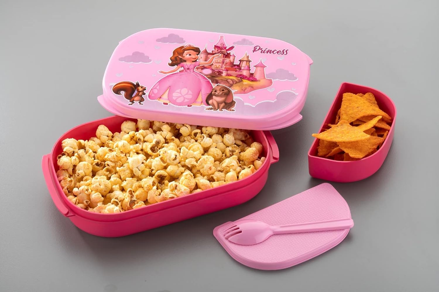 - ALL FOOD IN ONE CONTAINER: 3 compartments can fully accommodate the nutritional needs for children's school lunch, you can put cut-up sandwiches, soup, pasta, noodle, green salad, wraps, chips, nuts, dried fruit, and fruit and so on.